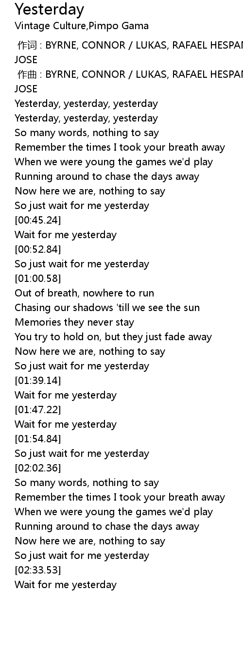 | [00:41.44] | So just wait for me yesterday |