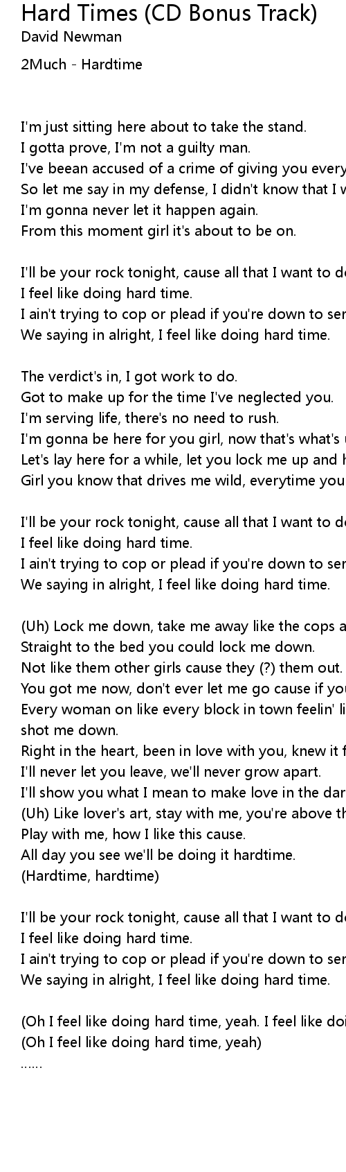 | (Oh I feel like doing hard time, yeah. I feel like doing hard time, yeah) | |