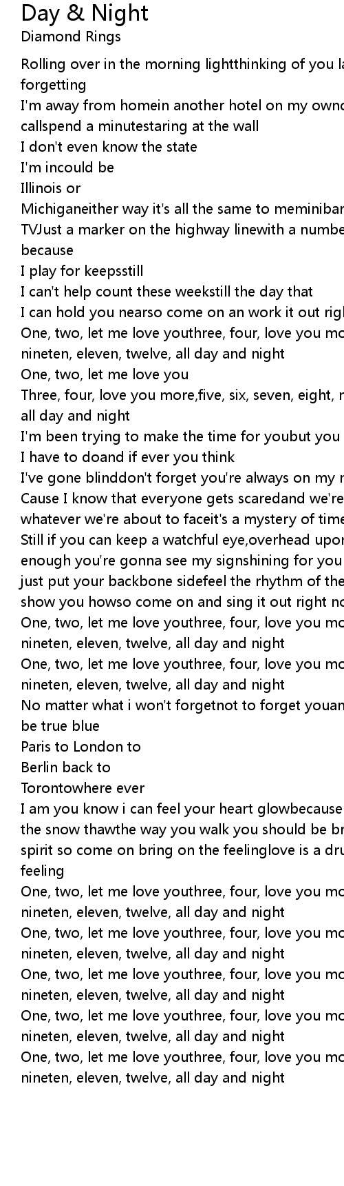 One, two, let me love youthree, four, love you morefive, six, seven, eight, nineten, eleven, twelve, all day and night |