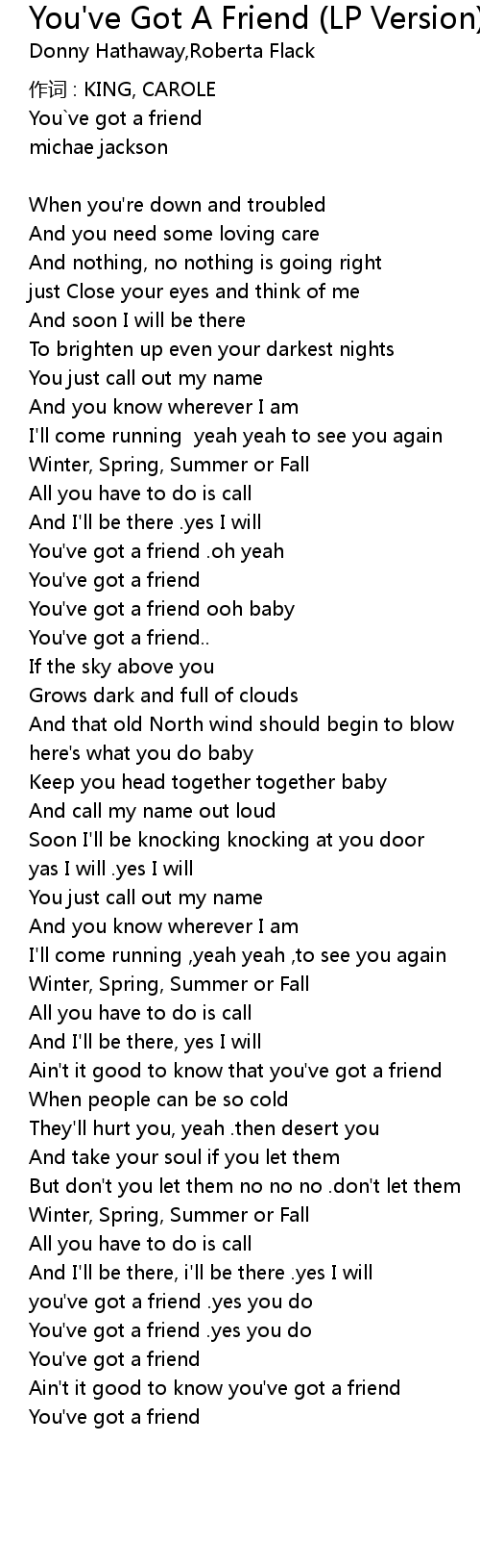 | You've got a friend .oh yeah | |