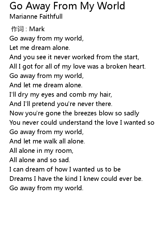| [00:46.42] | Go away from my world, |