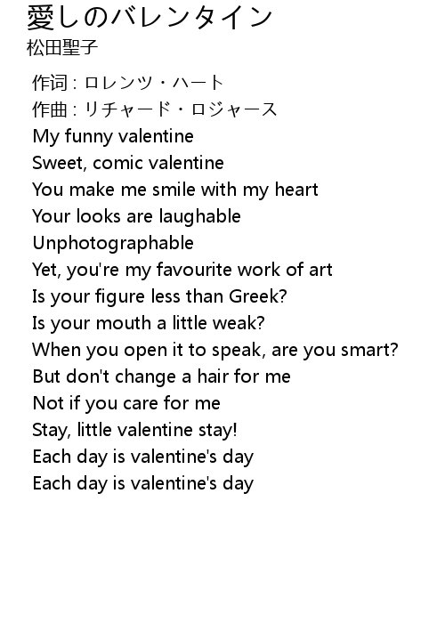 | [00:35.744] | My funny valentine |