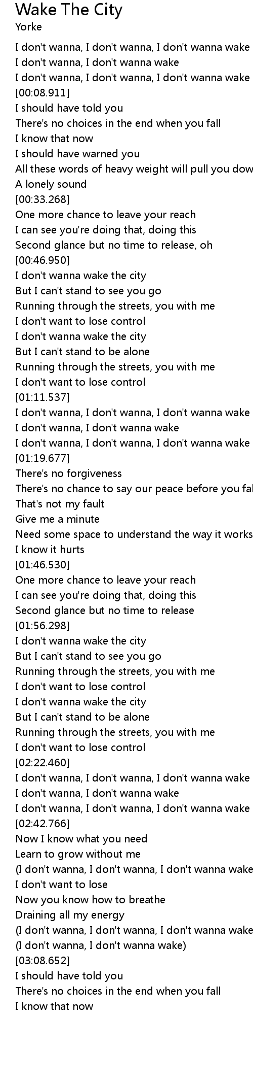 I don't wanna wake the city |
