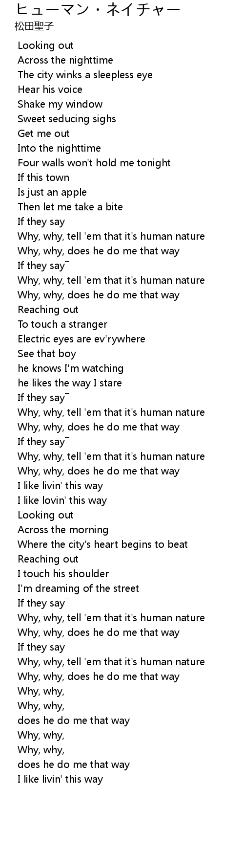 | [03:00.975] | Why, why, tell ' em that it' s human nature |