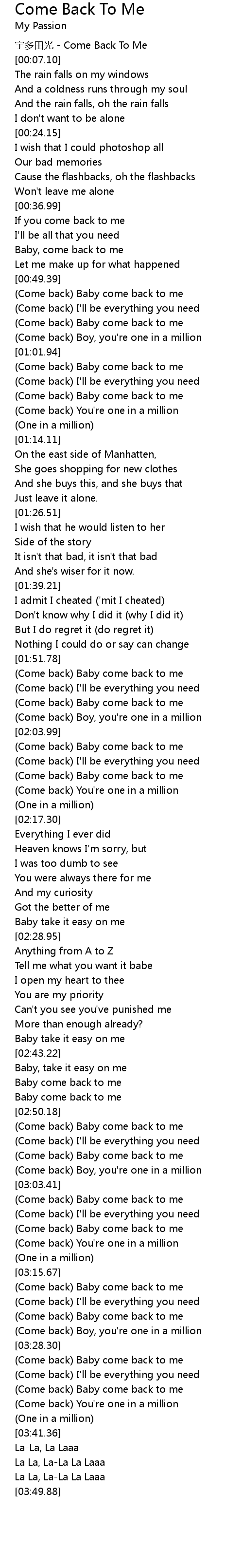 | [00:49.68] | (Come back) Baby come back to me |