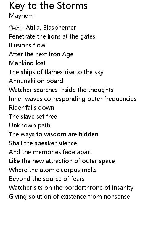 | Song | Key to the Storms |