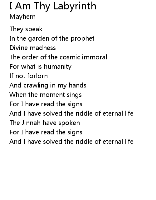 | Song | I Am Thy Labyrinth |