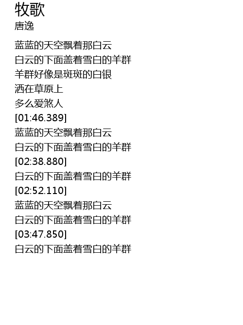 | [03:48.600] | 白云的下面盖着雪白的羊群 |