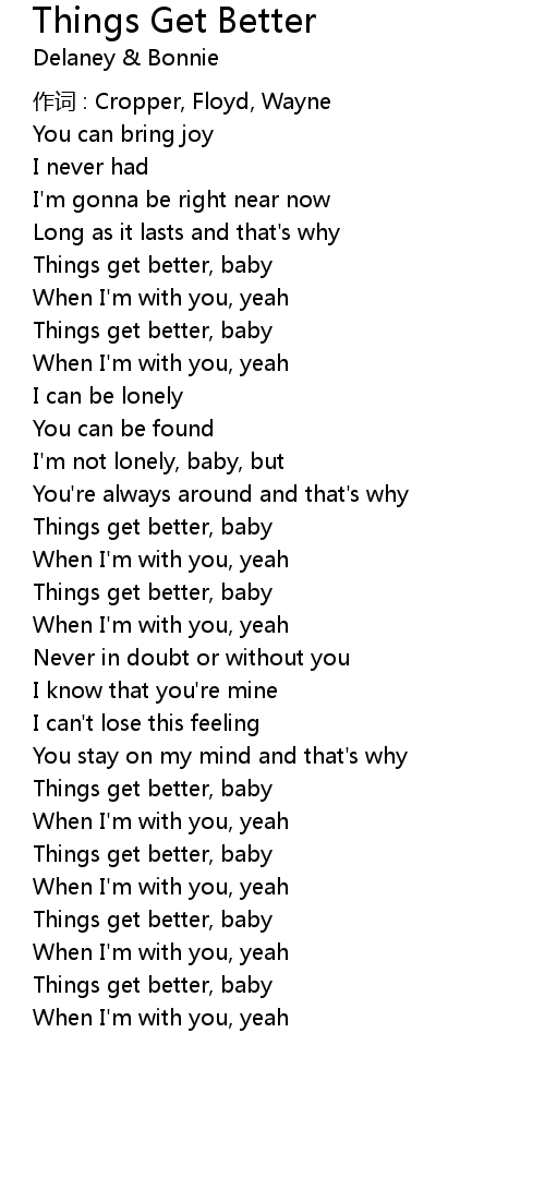 | Things get better, baby | |