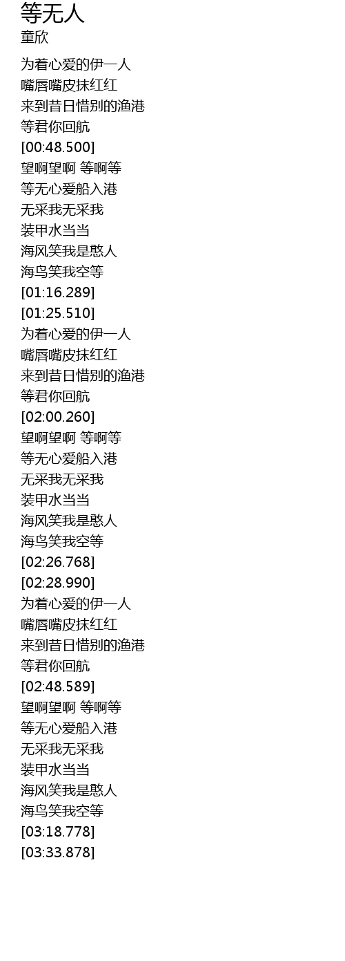 | [03:13.759] | 海鸟笑我空等 |