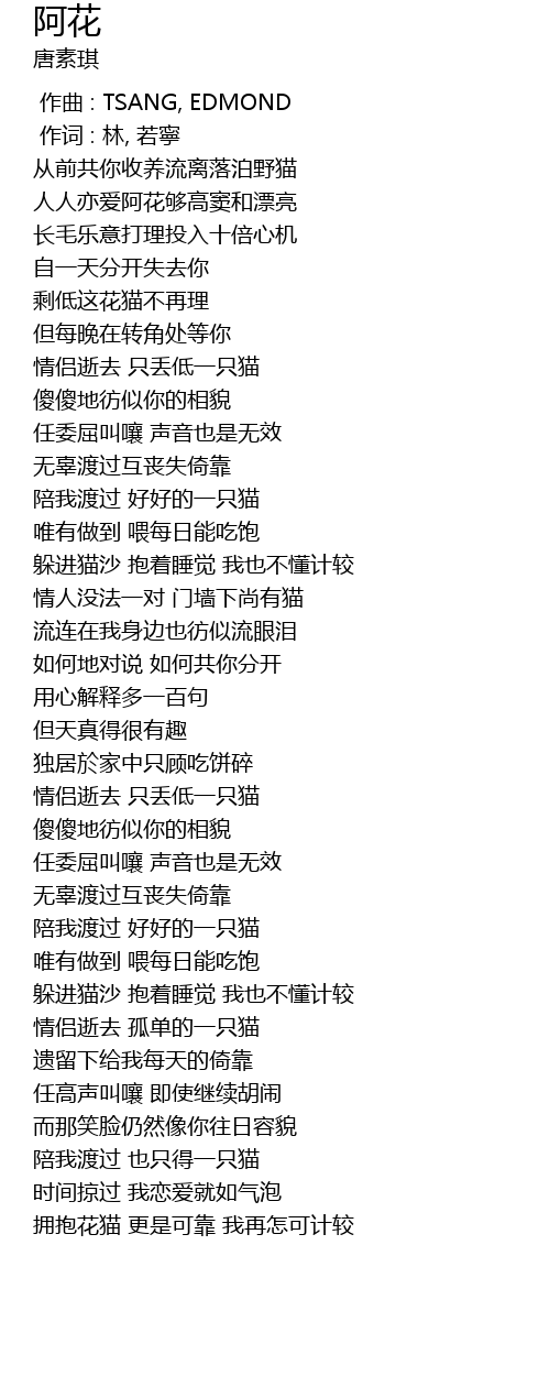 阿花 a hua Lyrics
