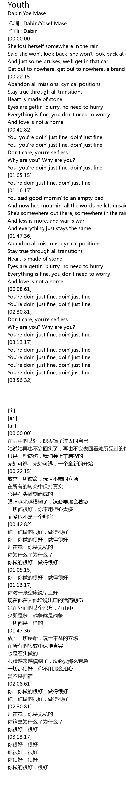 | [00:00.000] | zuò cí : Dabin Yosef Mase |