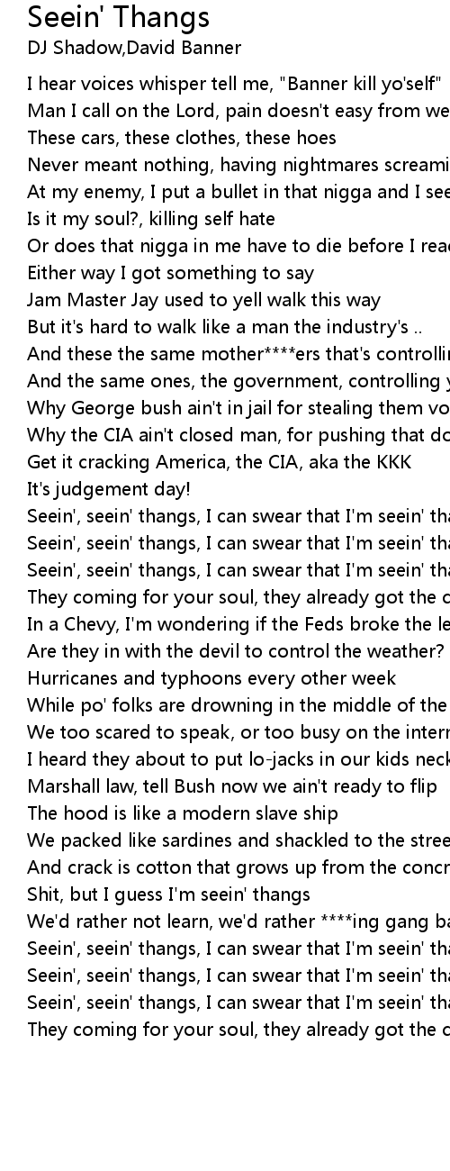 | Seein', seein' thangs, I can swear that I' m seein' thangs | |