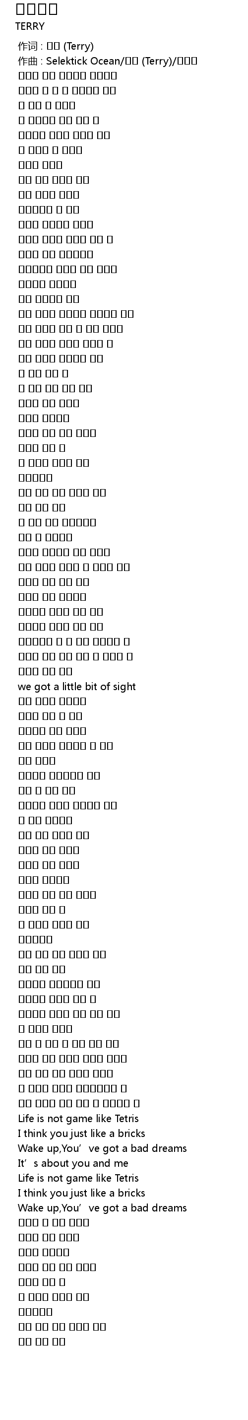 | [00:00.000] | 作词 : 태리 (Terry) |