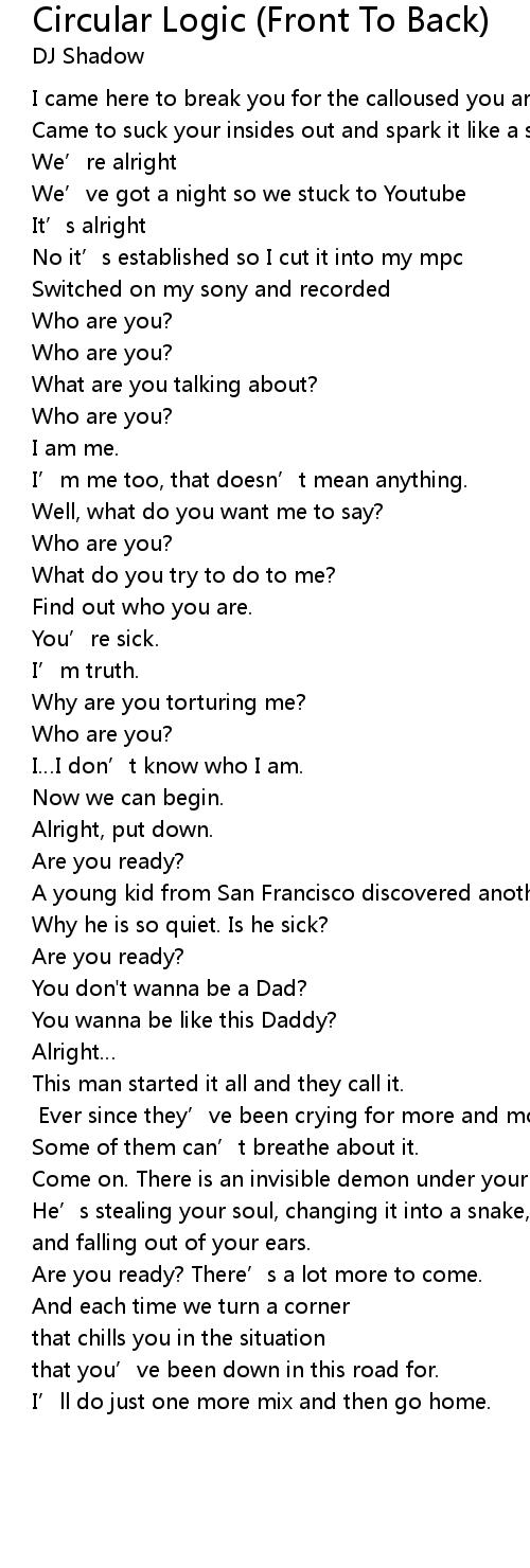 | Song | Circular Logic (Front To Back) |