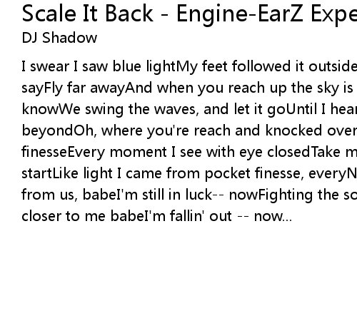 I swear I saw blue lightMy feet followed it outsideAnd I thought I heard someone sayFly far awayAnd when you reach up the sky is thereThis clueless weather knowWe swing the waves, and let it goUntil I heard someone sayOver the rise and beyondOh, where you're reach and knocked over starsLike light I came from pocket finesseEvery moment I see with eye closedTake me to places where we can startLike light I came from pocket finesse, everyNothing can steal this treasure from us, babeI'm still in luck-- nowFighting the soundsTake chances and come closer to me babeI'm fallin' out -- now... |