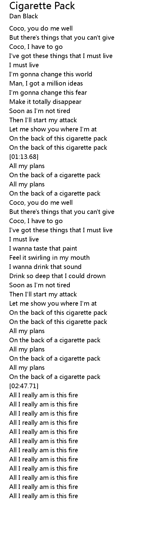 | [02:44.45] | On the back of a cigarette pack |