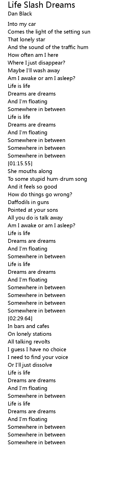 | [01:49.64] | Am I awake or am I asleep? |