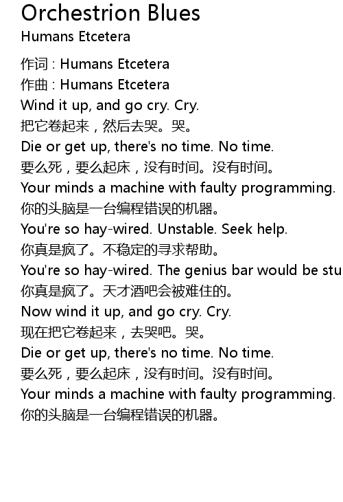 | yào me sǐ, yào me qǐ chuáng, méi yǒu shí jiān. méi yǒu shí jiān. | |