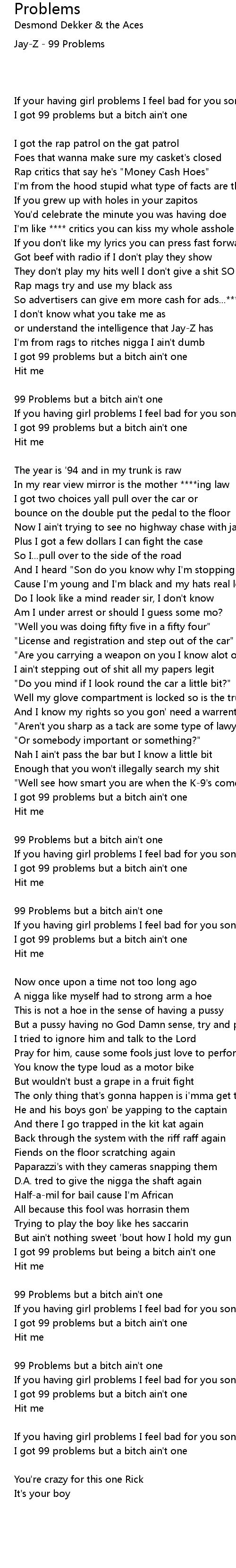 99 Problems but a bitch ain't one |