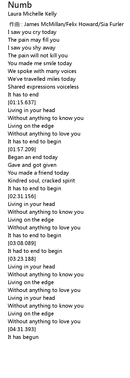 | [00:00.000] | 作曲 : James McMillan/Felix Howard/Sia Furler |