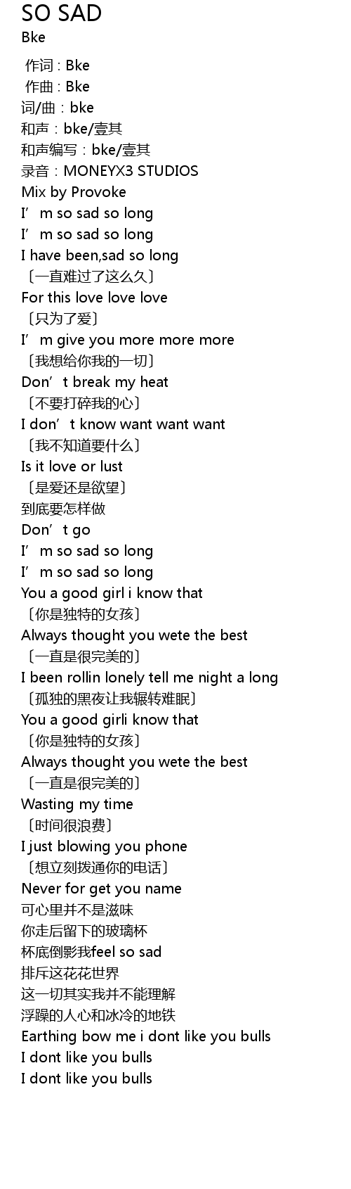 | [01:53.443] | bēi dǐ dào yǐng wǒ feel so sad |