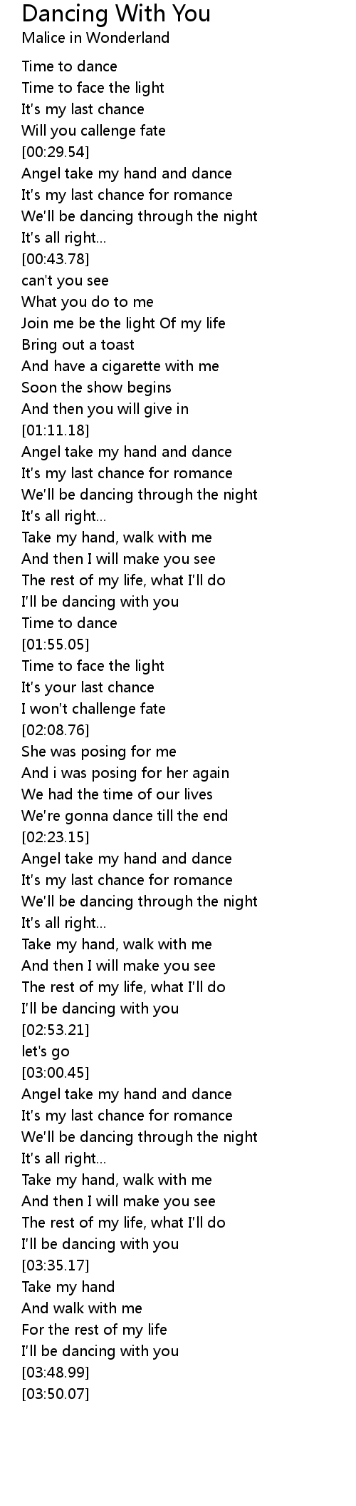 | [00:31.05] | Angel take my hand and dance |