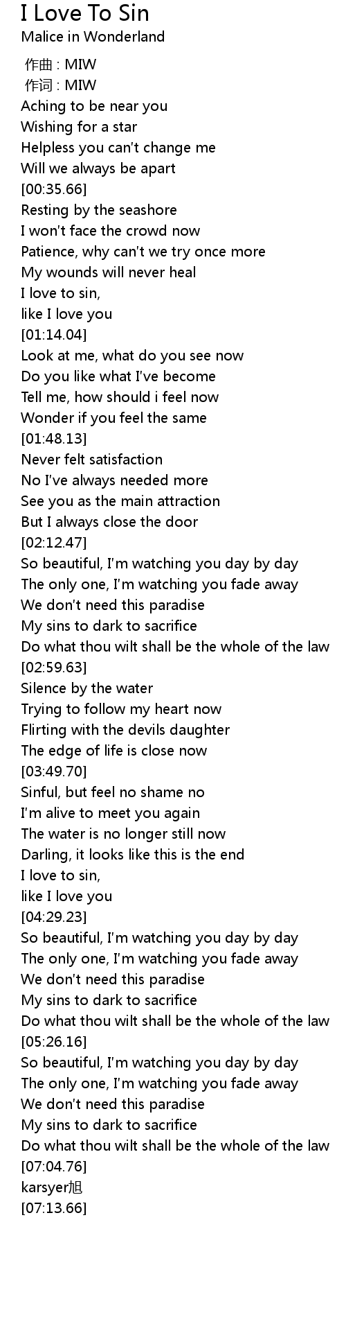 | [00:58.52] | I love to sin, |