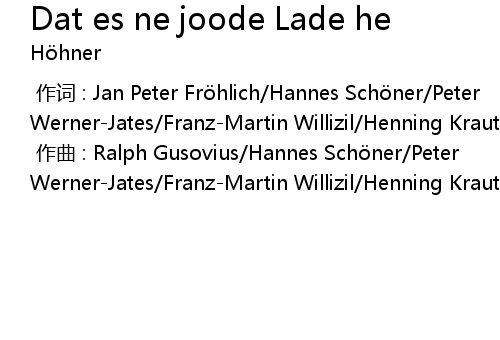 | [00:00.000] | 作词 : Jan Peter Fröhlich/Hannes Schöner/Peter Werner-Jates/Franz-Martin Willizil/Henning Krautmacher |