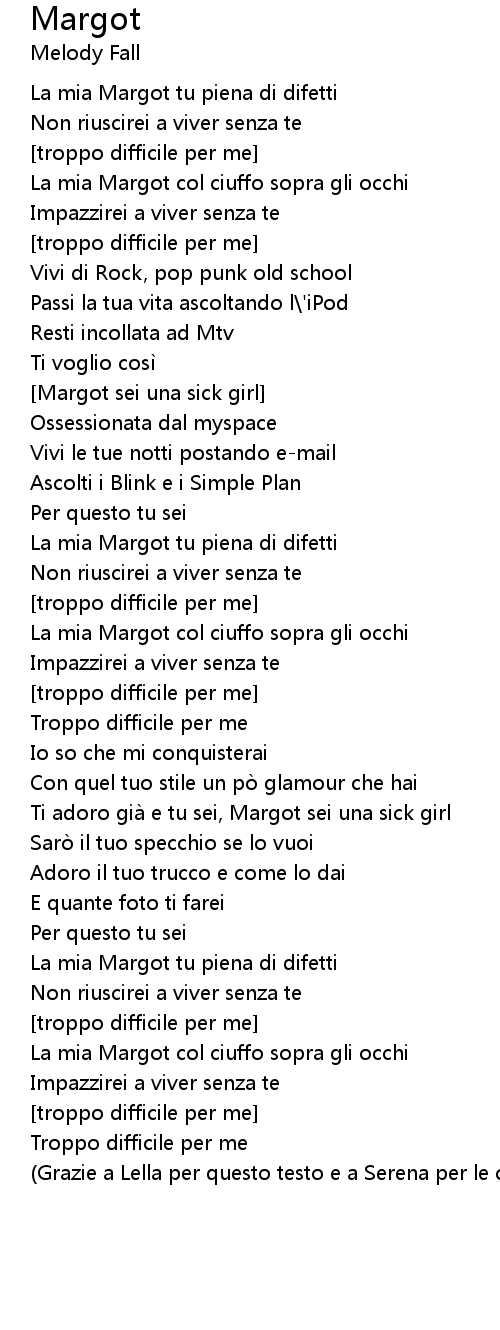 | Ti adoro gia e tu sei, Margot sei una sick girl | |
