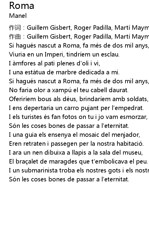| [00:09.20] | Si hague s nascut a Roma, fa me s de dos mil anys, |