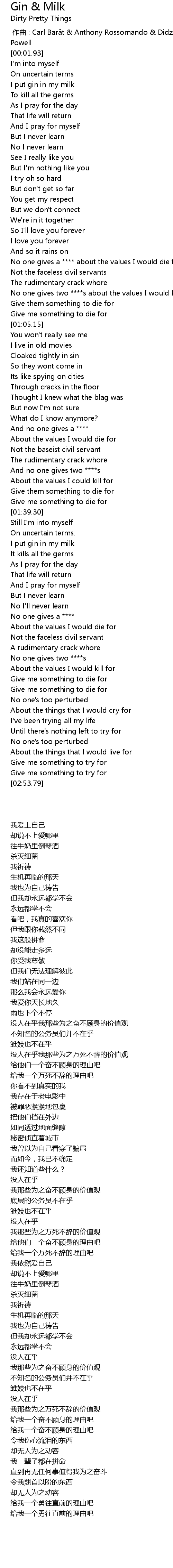 | [00:19.46] | I put gin in my milk |