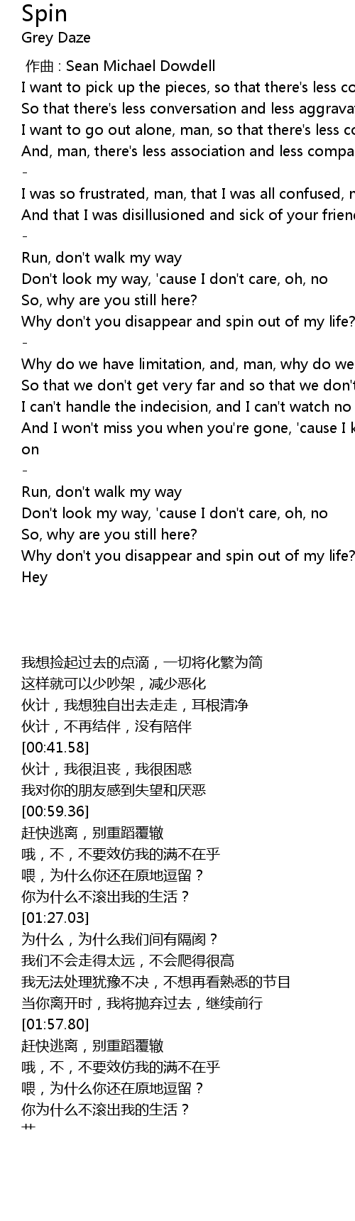 | [02:19.19] | Why don't you disappear and spin out of my life? Oh |