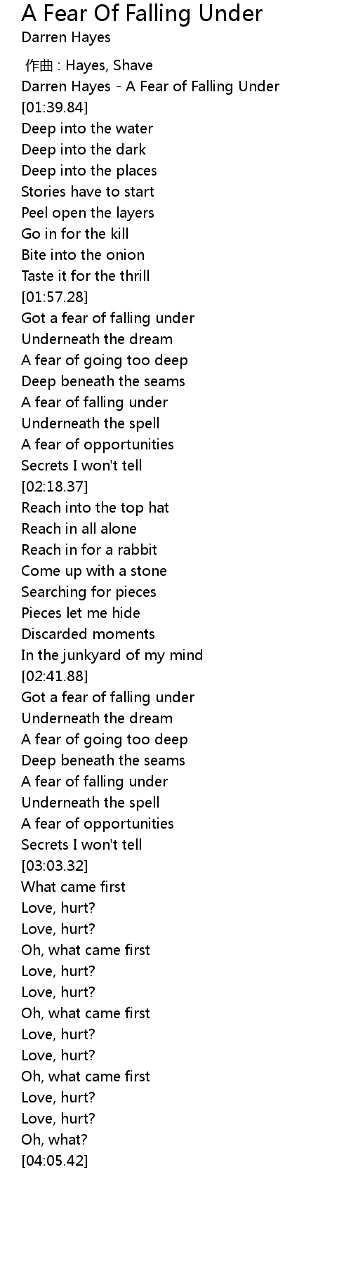 | [00:00.00] | Darren Hayes A Fear of Falling Under |