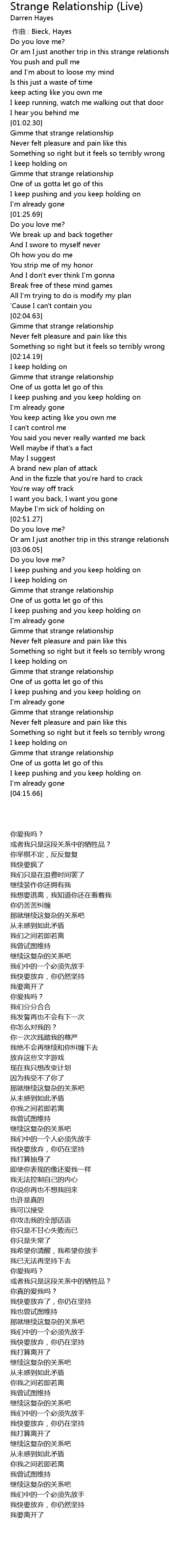 | [02:58.69] | Or am I just another trip in this strange relationship? |