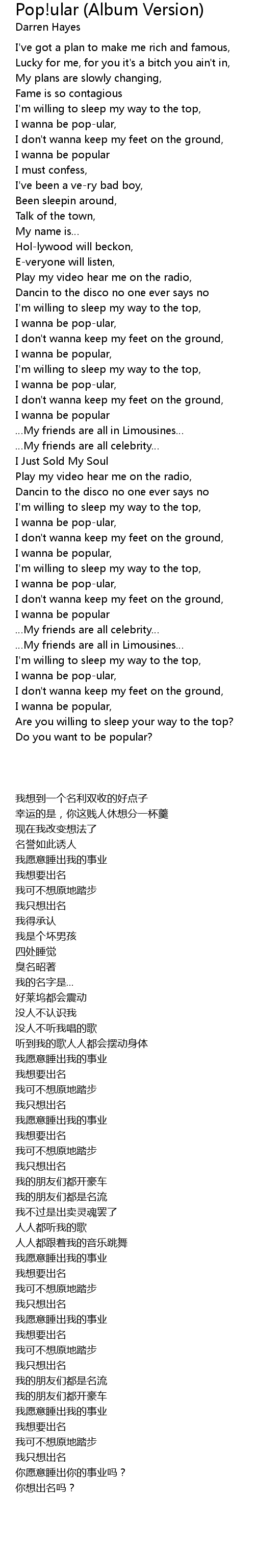 | [01:31.330] | I wanna be pop-ular, |