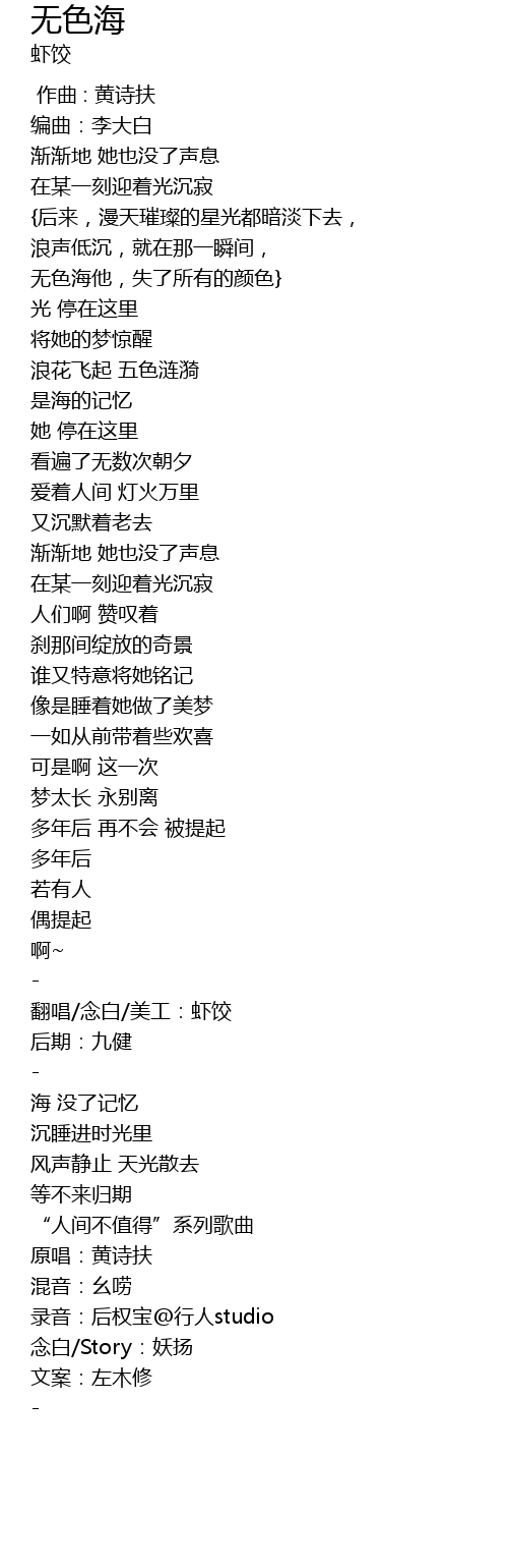 | [02:54.47] | 翻唱/念白/美工:虾饺 |