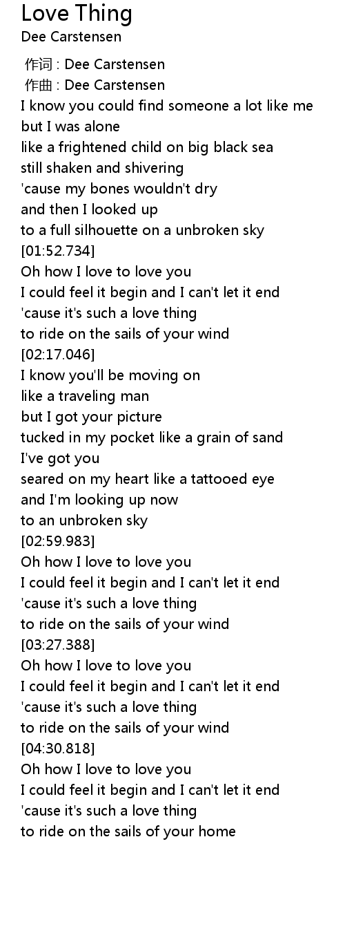 | [03:16.450] | ' cause it' s such a love thing |