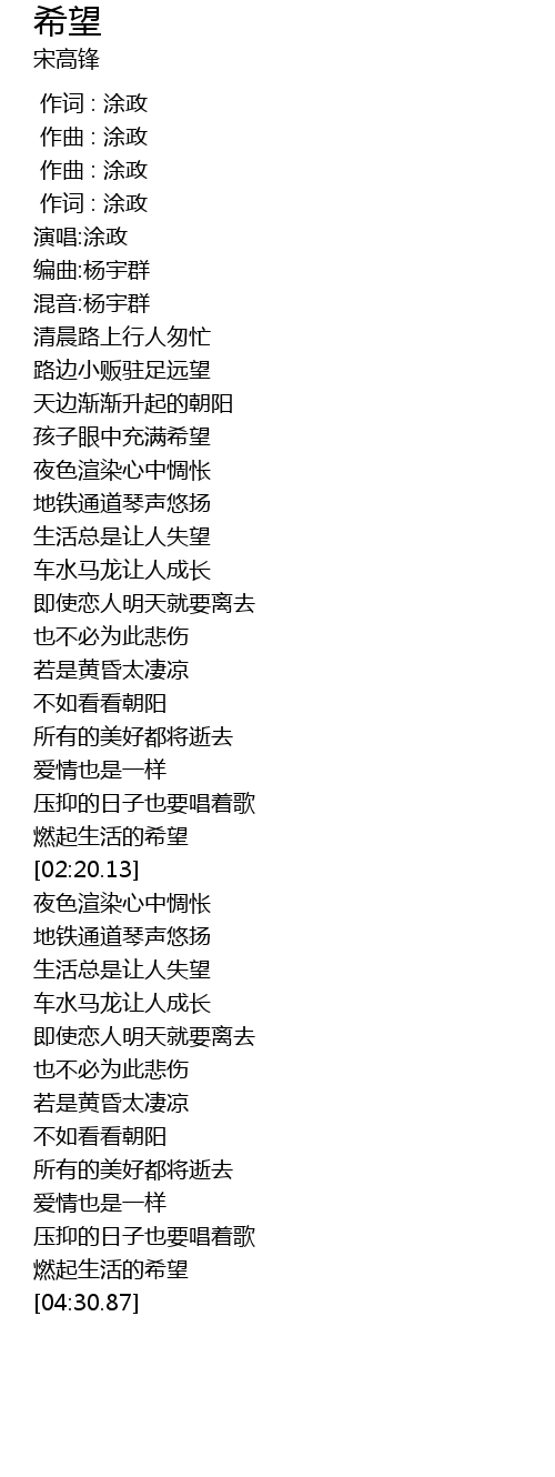 | [00:00.000] | 作曲 : 涂政 |
