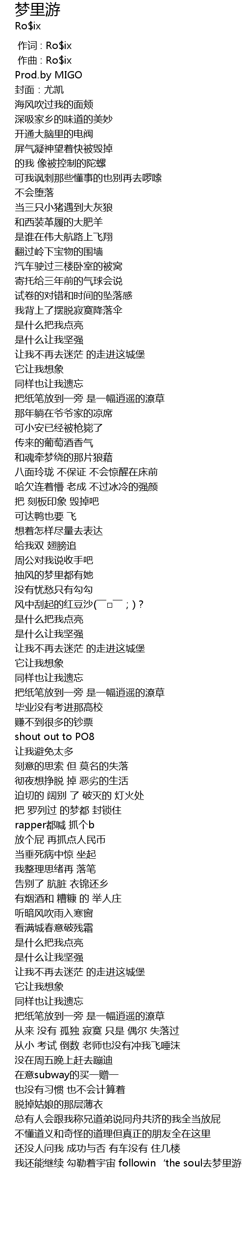 | [00:01.000] | 作曲 : Ro$ix |