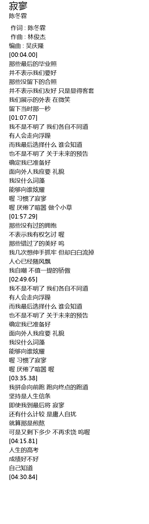 | [03:45.94] | 即使我到最后将 寂寥 |