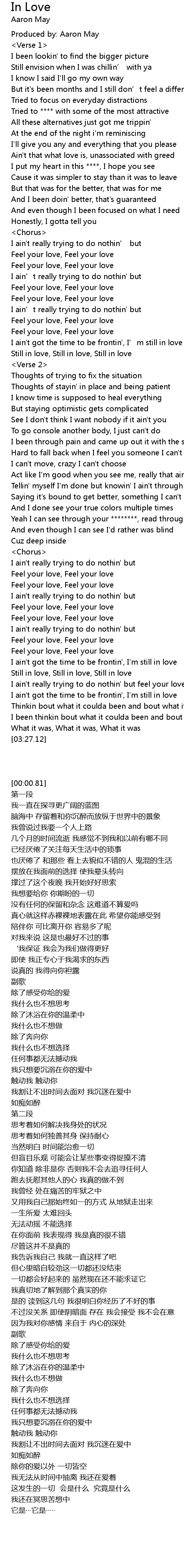| [02:51.71] | I ain't got the time to be frontin', I'm still in love |