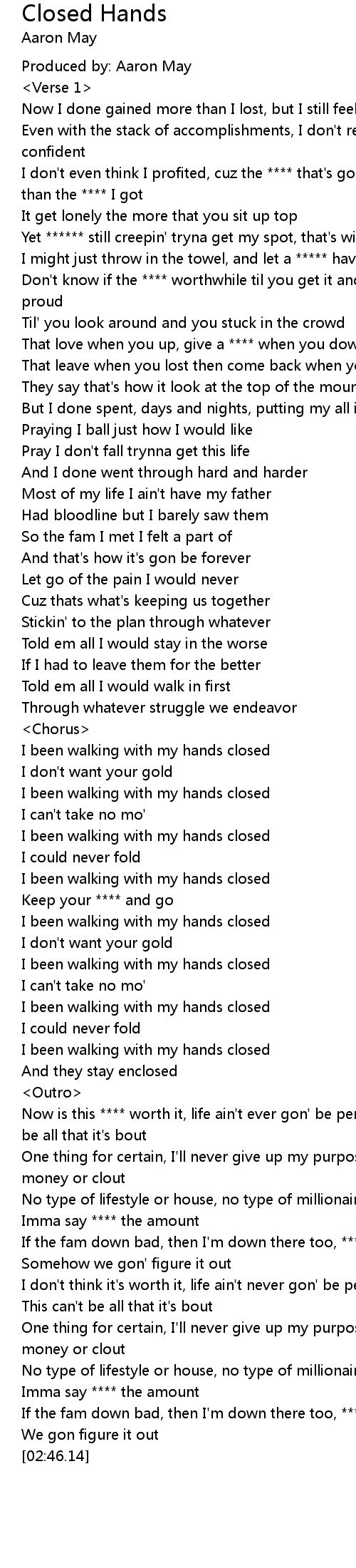| [00:40.86] | I don't even think I profited, cuz the **** that's gone worth more than the **** I got |