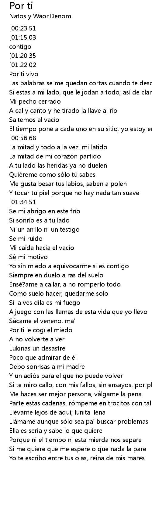 | [01:23.45][01:34.51][02:40.65][02:51.76] | Por ti |