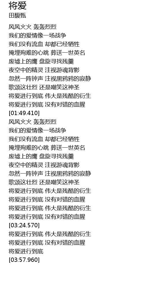 | [03:37.210] | 将爱进行到底 伟大是残酷的衍生 |