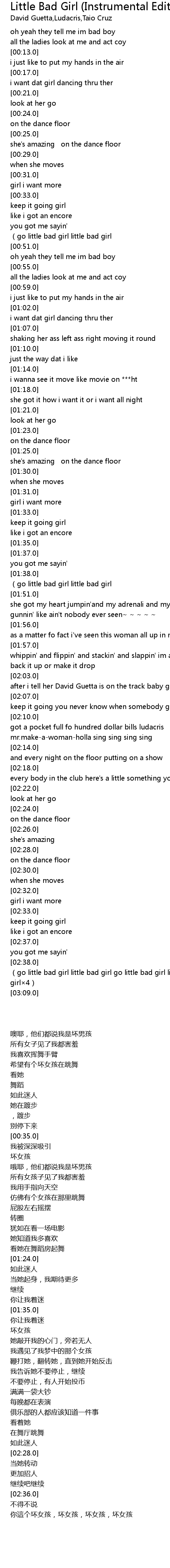 | [02:38.0] | (go little bad girl little bad girl go little bad girl little bad girl×4) |