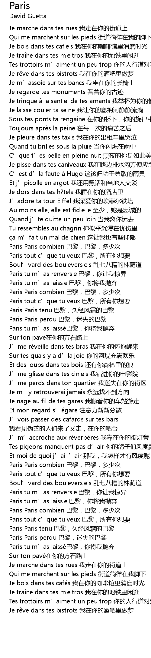 | [01:41.24] | Paris Paris combien 巴黎,巴黎,多少次 |