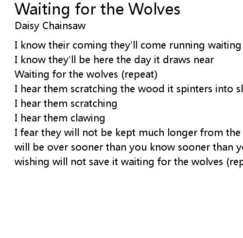 | I fear they will not be kept much longer from the door so don't you worry it will be over sooner than you know sooner than you know you wish can't change it wishing will not save it waiting for the wolves (repeat) |
