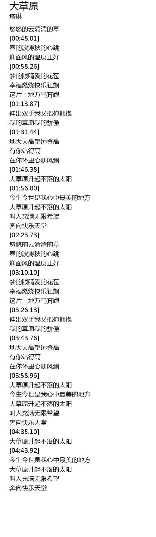 | [04:00.48] | 大草原升起不落的太阳 |