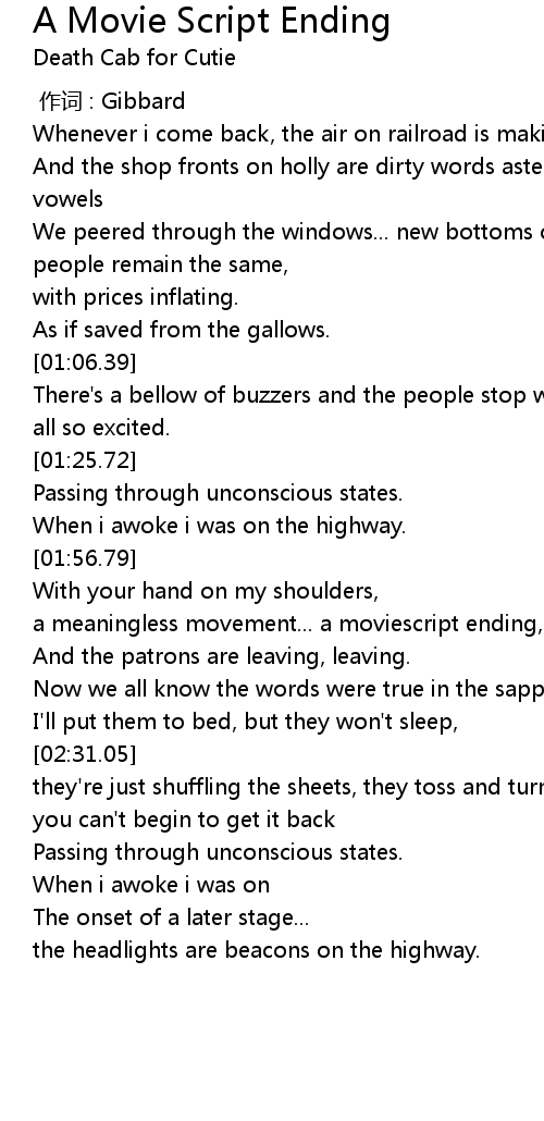 | [00:00.00] | 作词 : Gibbard |